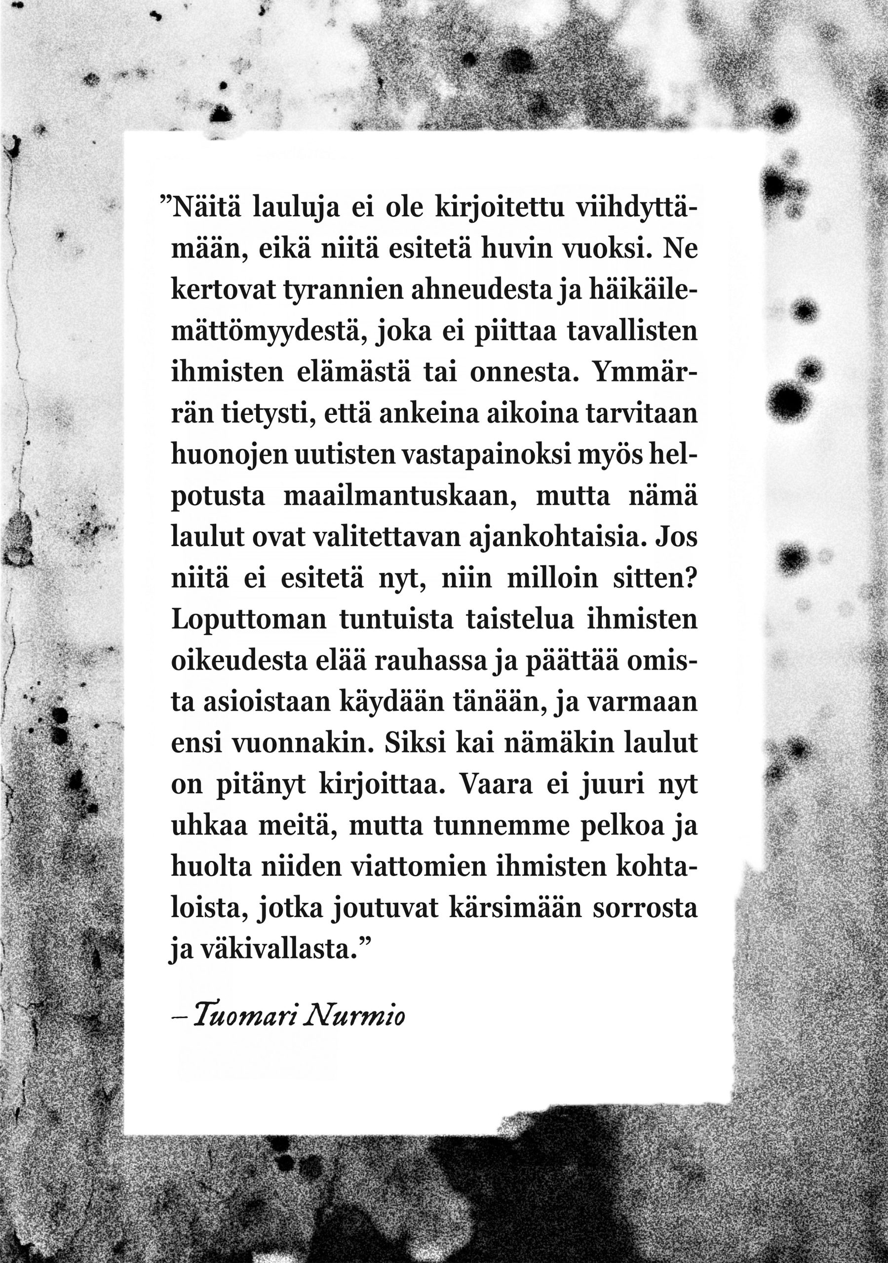 Tuomari Nurmio & Spuget & Blosarit: Lauluja sodasta ja diktatuurista